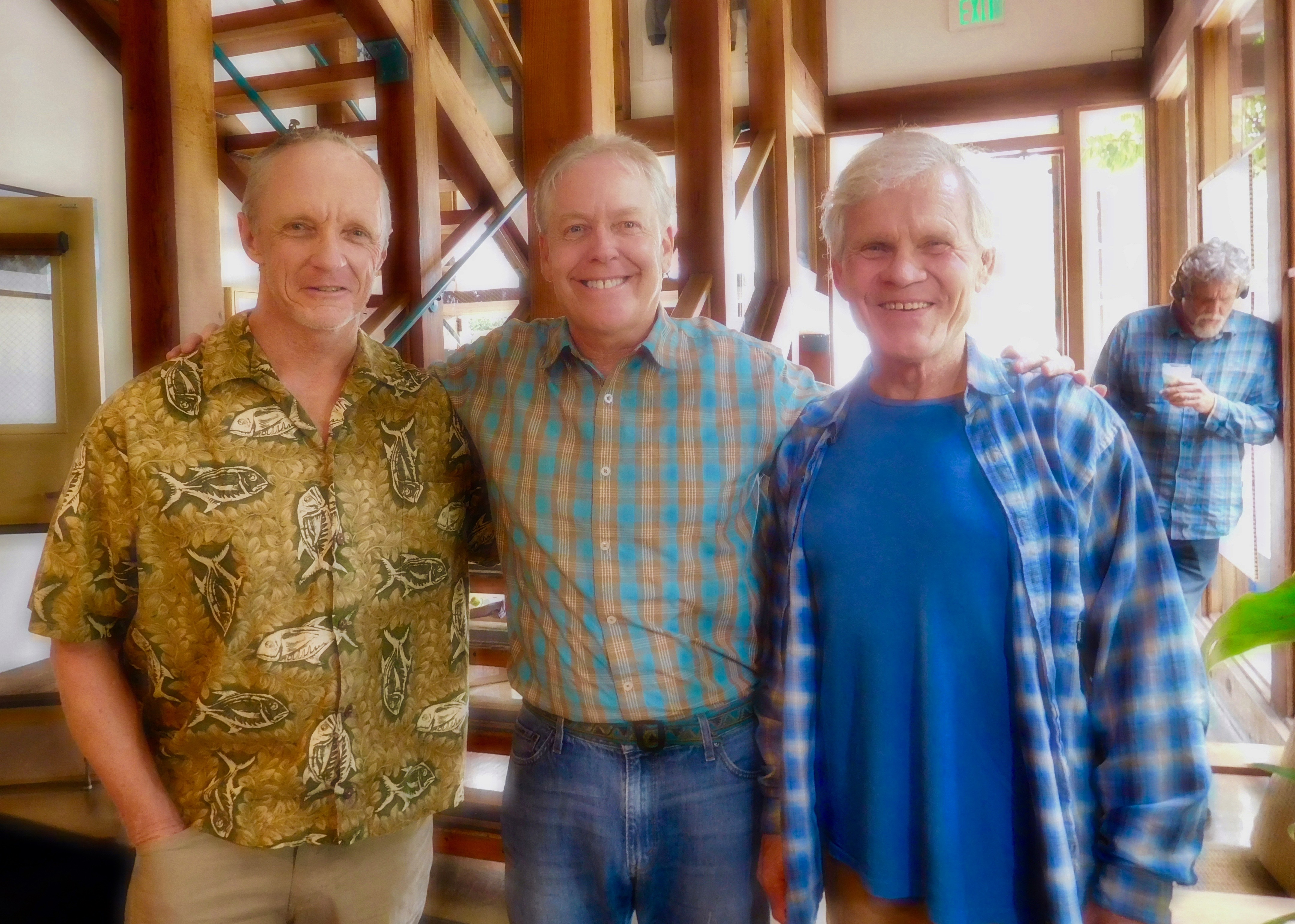 Patagonia Books Chief Editor John Dutton (left), Jim, and world famous explorer and author of a "Life Lived Wild", Rick Ridgeway (right).